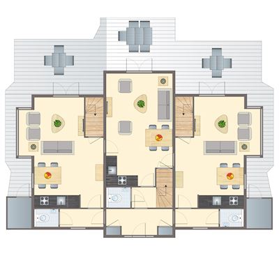 - Drei Badezimmer mit Dusche auf der ersten Etage