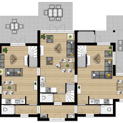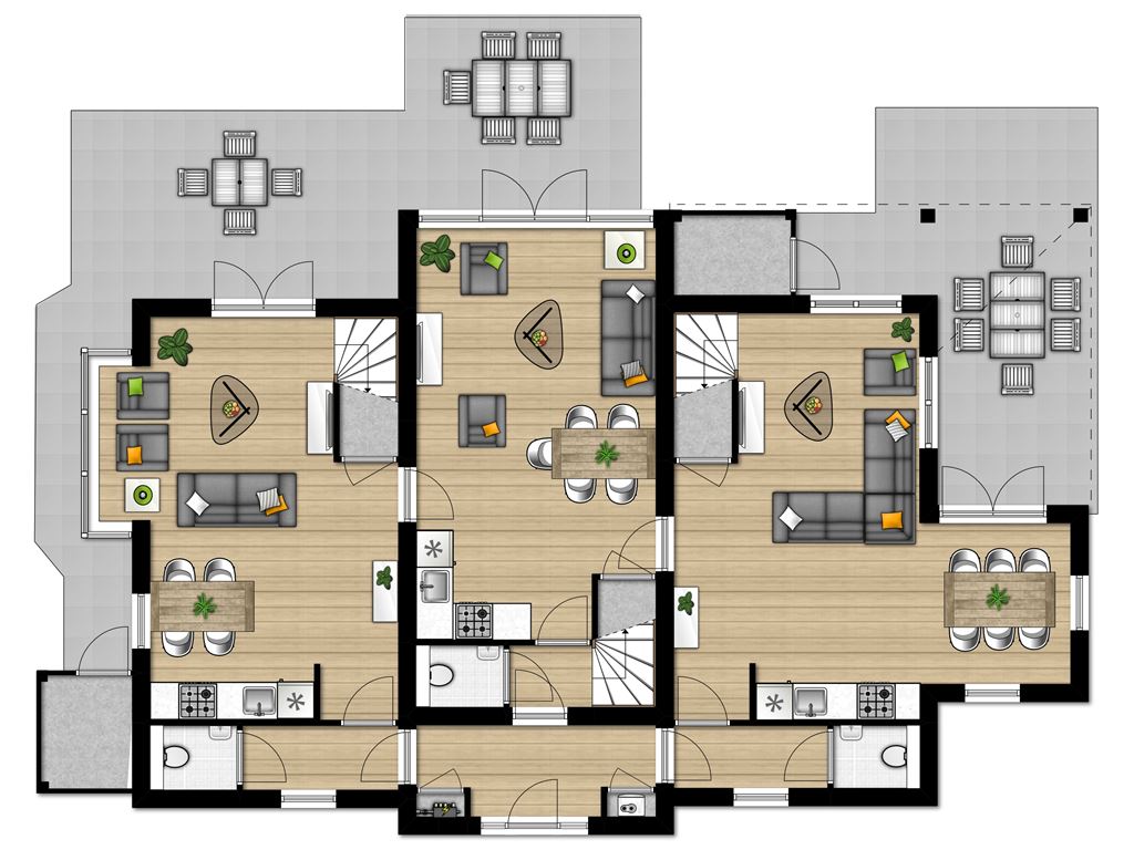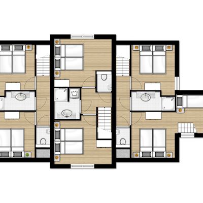 - Drei Badezimmer mit jeweils Dusche auf der ersten Etage