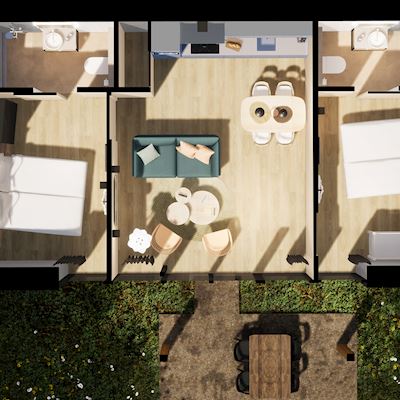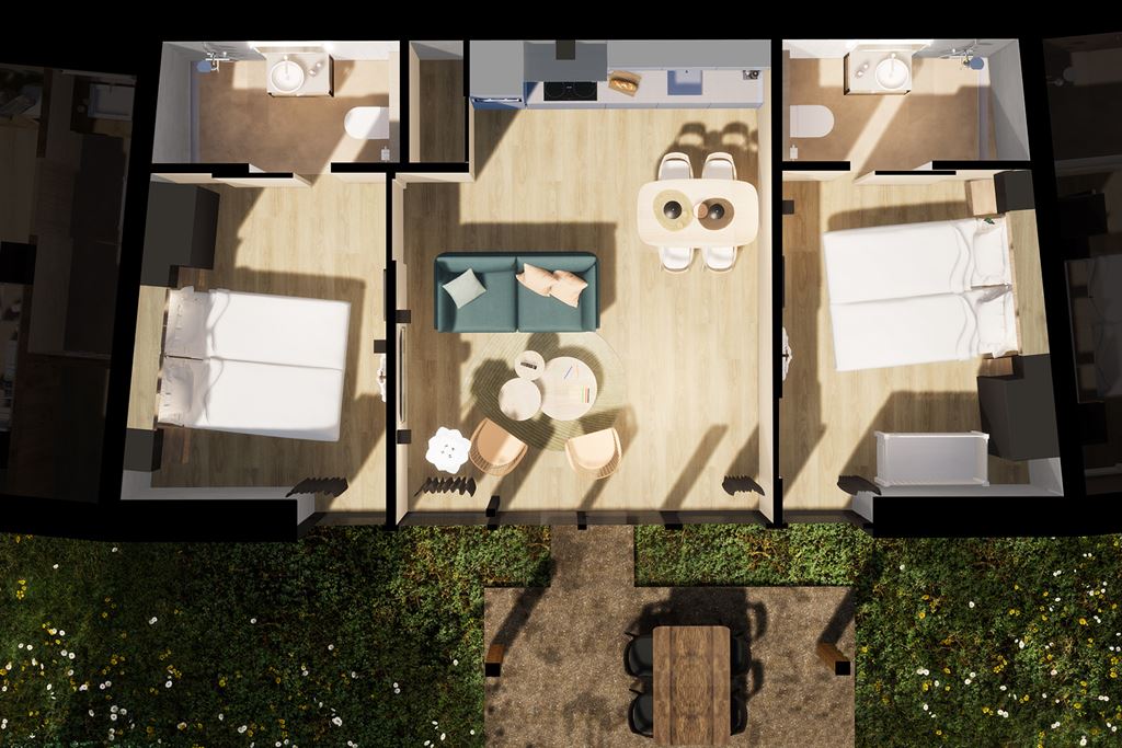 • Zwei Schlafzimmer mit jeweils zwei Boxspring-Einzelbetten